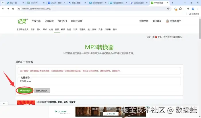 转mp3格式方法2:记灵在线工具