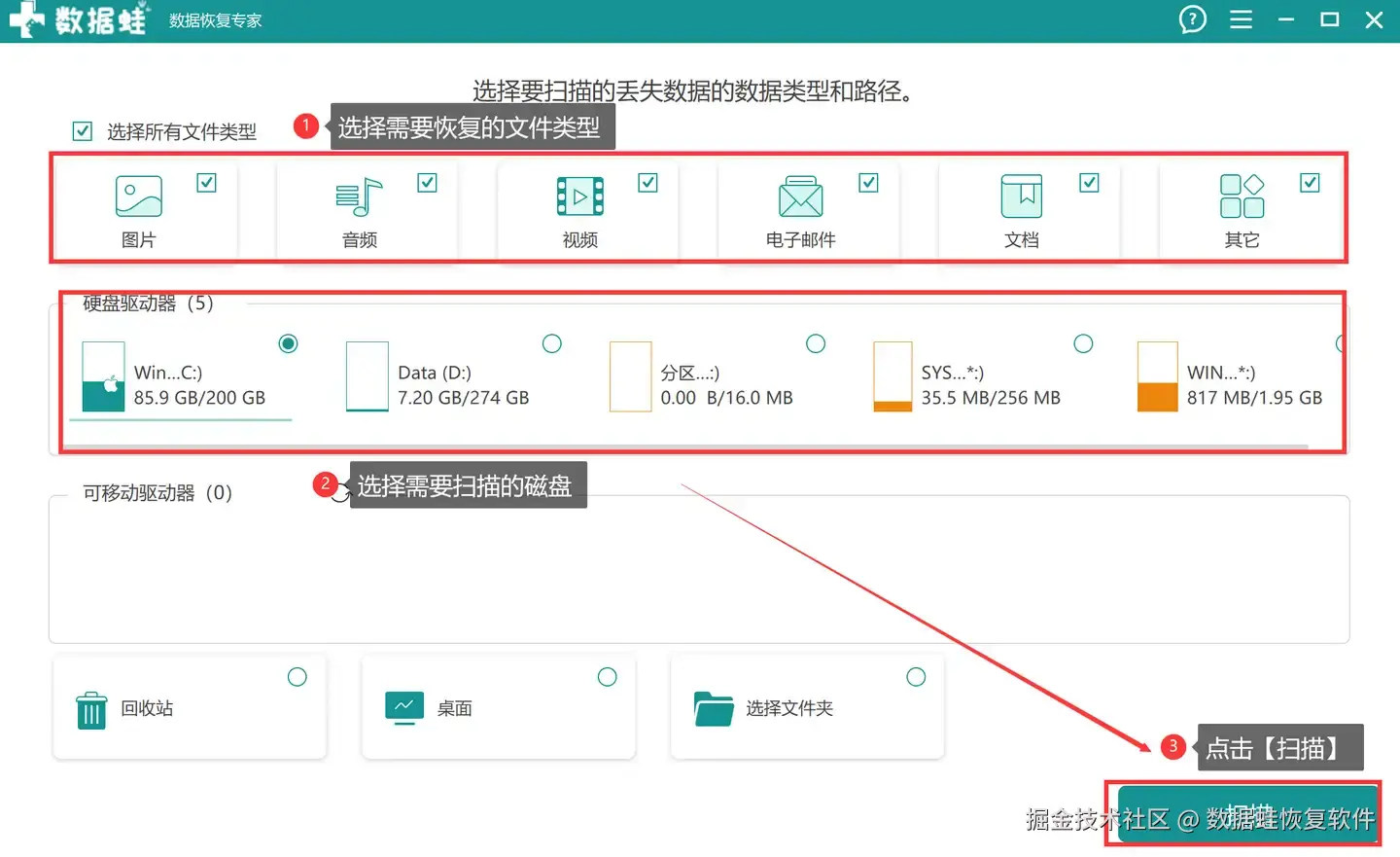 数据 蛙恢复专家适用于大多数电脑用户,致力于让更多用户能够一人实现电脑数据恢复,找回自己重要的文件。它只需要操作三步:扫描——恢复——保存,仅仅使用鼠标就可以做到硬盘数据恢复。