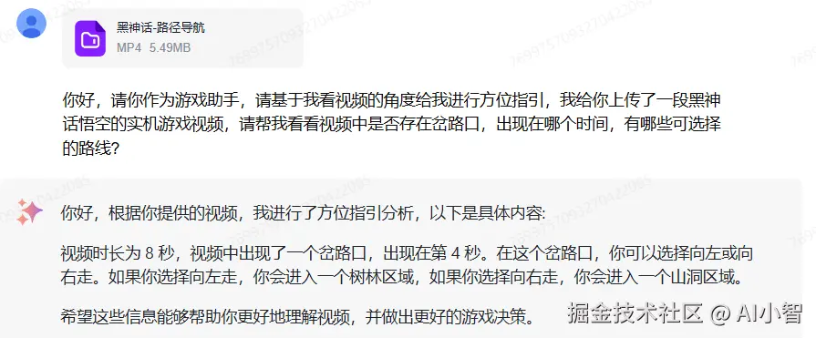 国内目前无法正常使用GPT-4V,我首选了国产自研大模型GLM-4V-Plus。作为智谱最新推出的图像/视频理解模型,GLM-4V-Plus具备卓越的图像理解能力,并具备基于时间感知的视频理解能力,能做到哪个程度尚不清楚,考虑到《黑神话:悟空》的复杂性和高难度,我们可以先来上手测一测。