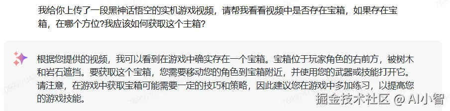 为了验证GLM-4V-Plus在游戏伴玩中的潜力,我们进行了针对《黑神话:悟空》的应用测试。此次测试主要集中在几个关键方面:游戏剧情的识别、宝箱和隐藏道具的发现以及路径导航。