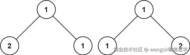 输入:p = [1,2], q = [1,null,2] 输出:false示例 3: