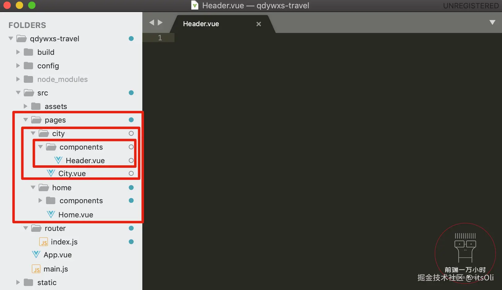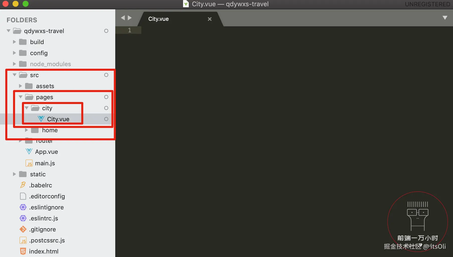 1️⃣在 src 下的 pages 中新建 city 文件夹(即“城市选择页”),并在 city 文件夹中新建一个 City.vue :