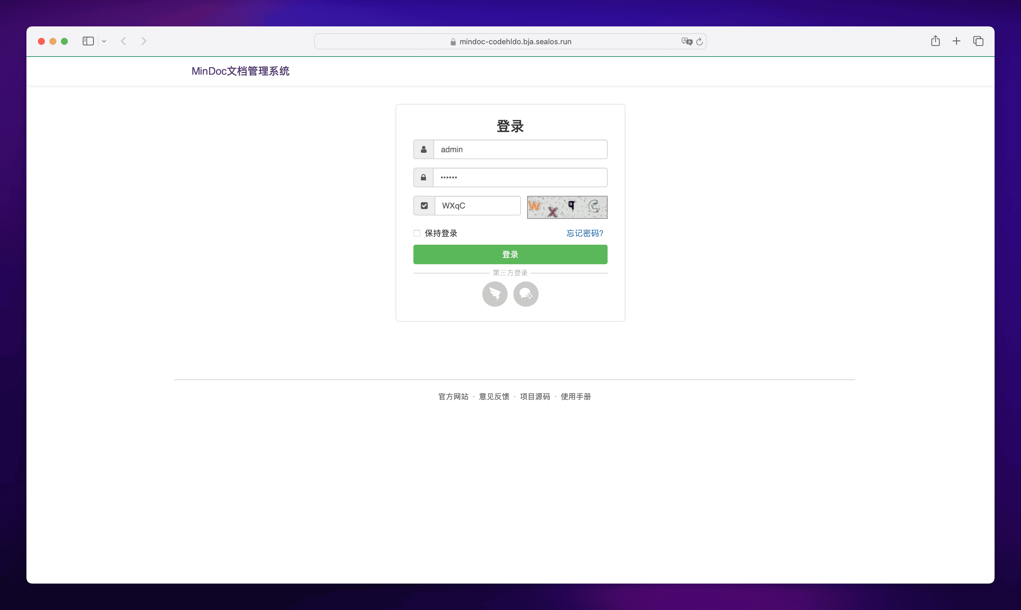 点击外网地址便可打开 MinDoc 的 UI 界面。