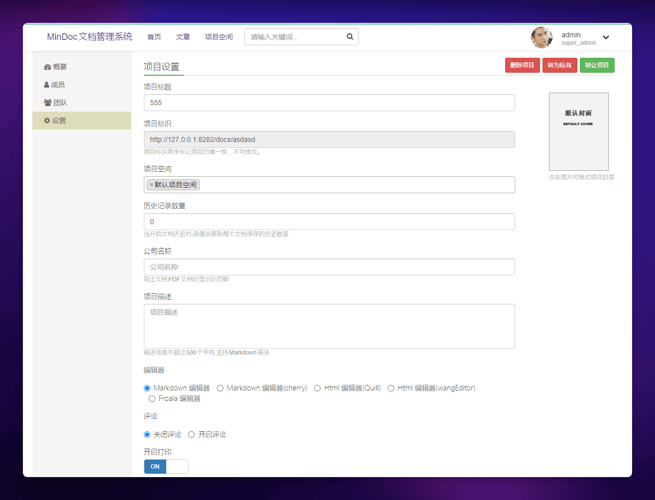 MinDoc 项目始于公司 IT 部门对简单实用的项目接口文档管理和分享系统的需求。它的功能和界面设计借鉴了知名的在线文档平台 kancloud。MinDoc 可以用来存储日常接口文档、数据库字典、手册说明等各类技术文档。系统内置了项目管理、用户管理、权限管理等功能,能够满足大部分中小团队的文档管理需求。