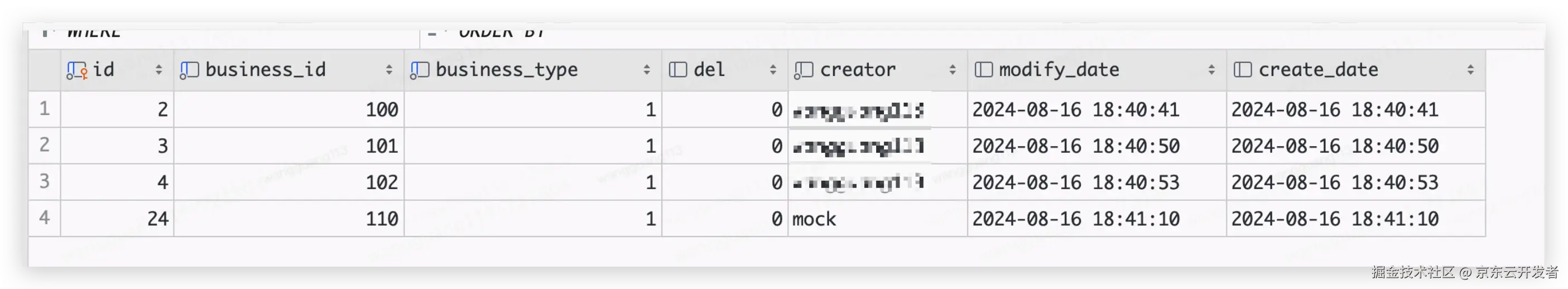`creator` varchar(50) NOT NULL COMMENT '创建人PIN',