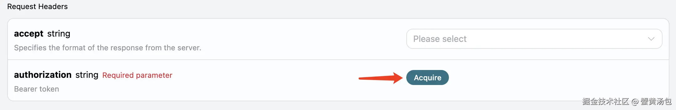 accept:想要接收怎样格式的响应结果,这里填写为application/json,即 JSON 格式。authorization:调用 API 的密钥,申请之后可以直接下拉选择。