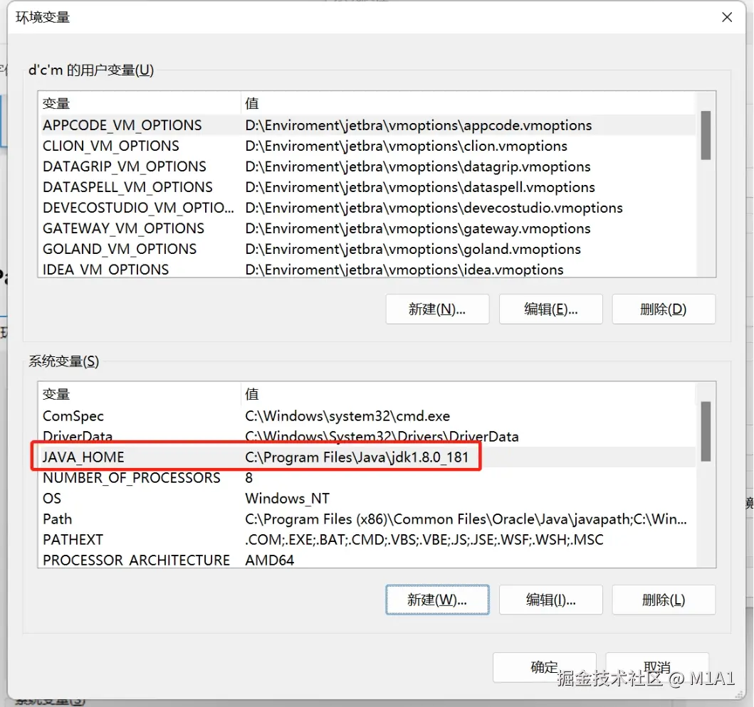 - 变量名填写JAVA_HOME