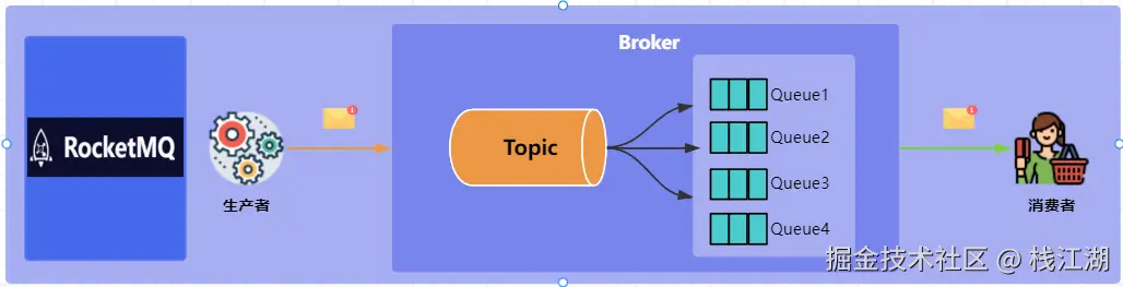 - 主题(Topic) :消息按主题分类,每个主题可以有多个队列。