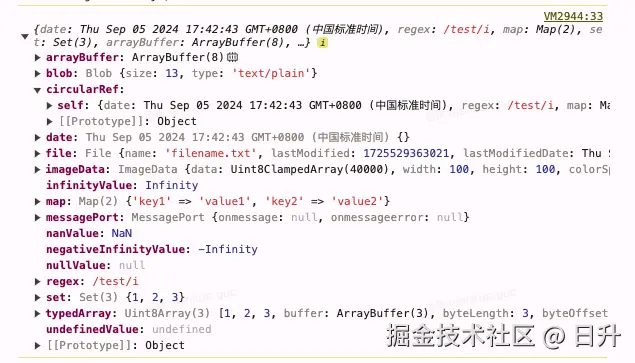 从上面的示例中能看出,structuredClone 支持了很多中数据类型,基本类型和普通对象都支持