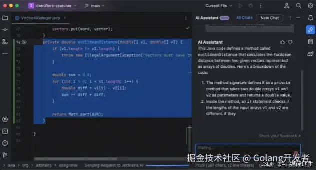 直到现在,Jetbrains 在基于 IntelliJ 的 IDE 和 .NET 工具的 EAP 版本上推出了 AI Assistant ,它由 JetBrains AI 服务提供支持,并结合了 OpenAI 的功能以及 JetBrains 自己的小型模型,未来会扩展更多的服务商和支持本地模型,让用户能够选择最佳的模型。