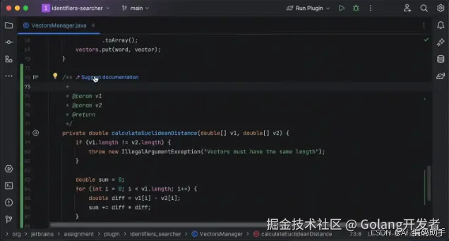 恰到好处的文档可以增强代码的可读性,方便代码维护和修改,并促进协作。但是好的文档却不容易写出,使用 AI Assistant 可以根据方法入参和逻辑生成文档,解放你的双手。目前 Java、Kotlin 和 Python 支持此功能。