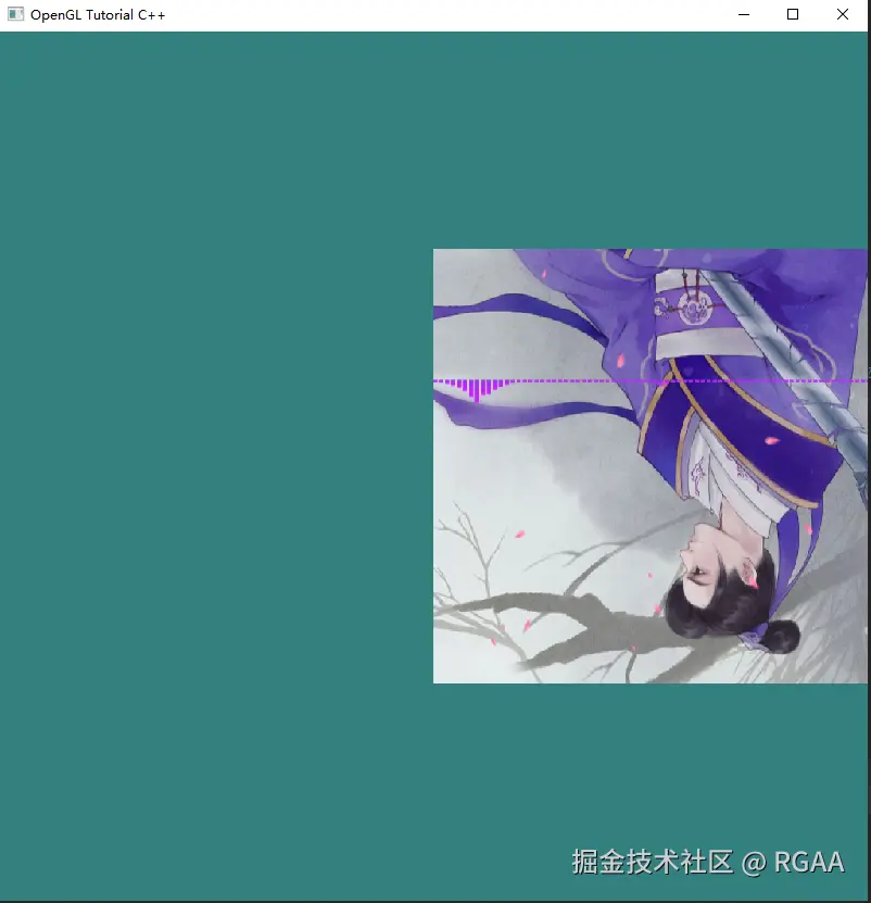 从运行效果看,我们的确将图片显示了出来,但却是上下翻转的。这是因为OpenGL的Y轴 0 从底部开始,而图像的 Y轴 0 基本从 上面开始。这也很常见,比如Android的屏幕坐标就是左上角开始的,向下Y轴增加。