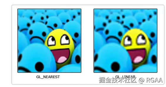 OpenGL中的过滤方式由多种,常用的两种:GL_NEAREST和GL_LINEAR。