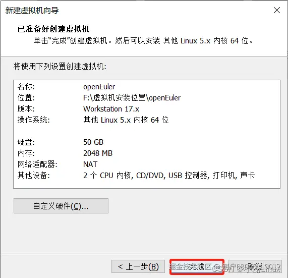 2.1.8 选择网络类型选择NAT后续可连接物理网络进行上网