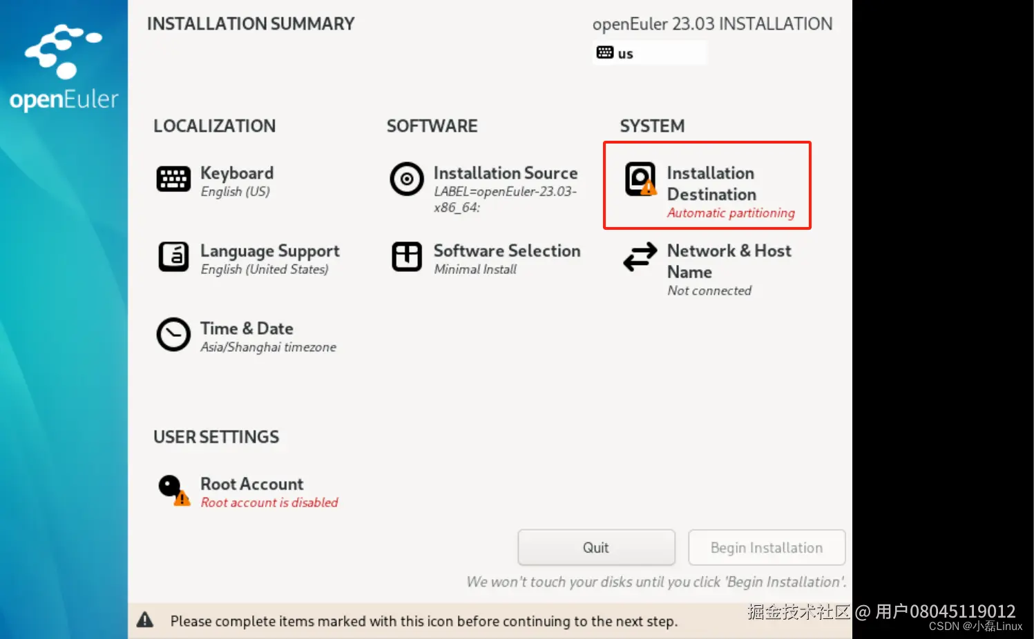 2.2.8 按照顺序选择(1)自定义分区(2)选择系统安装磁盘 (3)完成