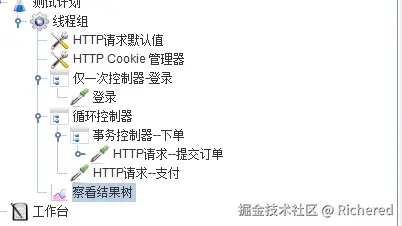 观察上方的Jmeter的目录结构,支付接口是需要提交订单接口的response报文信息,此处,若是加入循环,那么支付接口是否会有序的获取到提交订单接口的response报文参数信息呢?