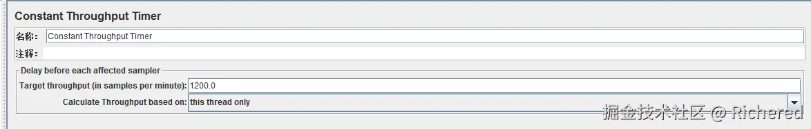 用到组件:定时器-->Constant Throughput Timer(恒定吞吐量定时器)