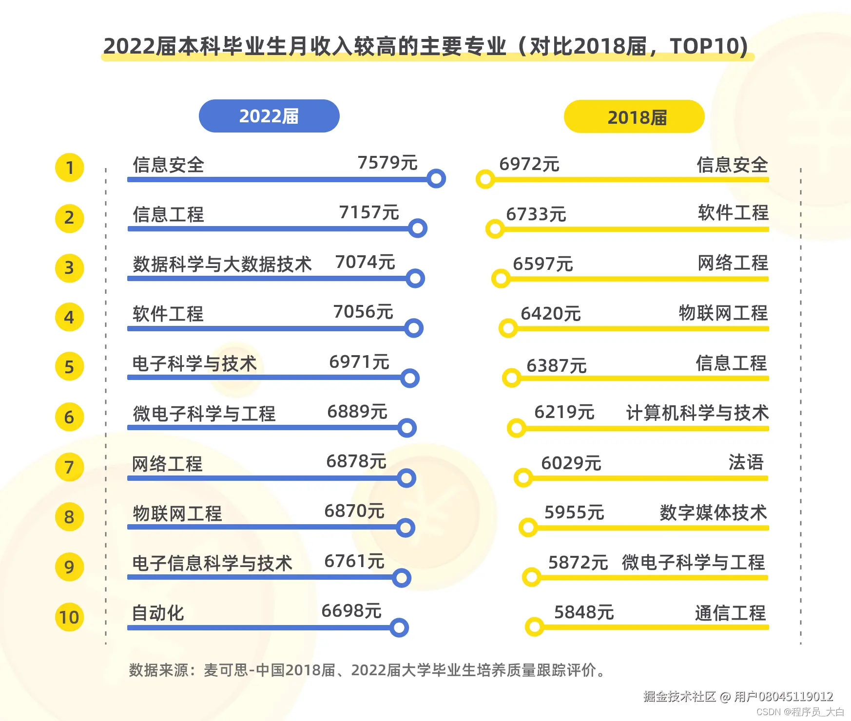 2022届大学毕业生月收入较高的前10个专业