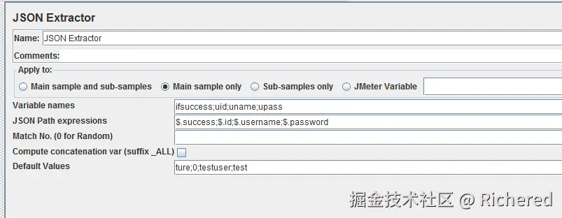 Jmeter也有专门提取json的提取器,当然是第三方插件咯。。。Json Path Extractor