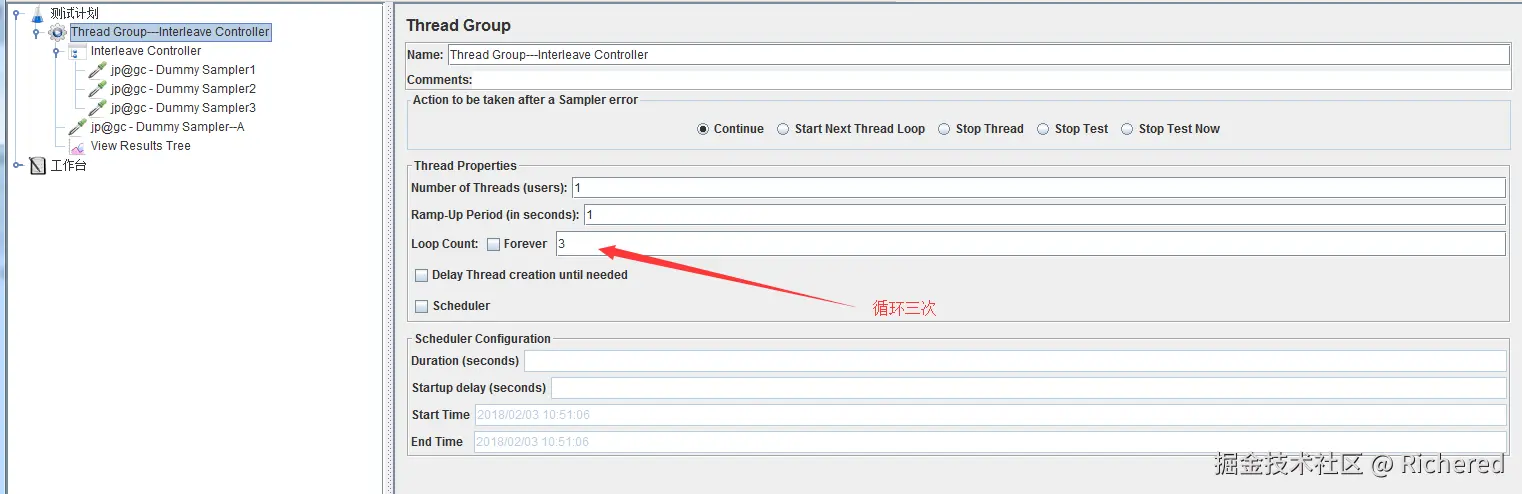 可以看到运行一次 Interleave Controller下的Sampler,运行一次 Interleave Controller之外的Sampler。如此不停的交错循环。