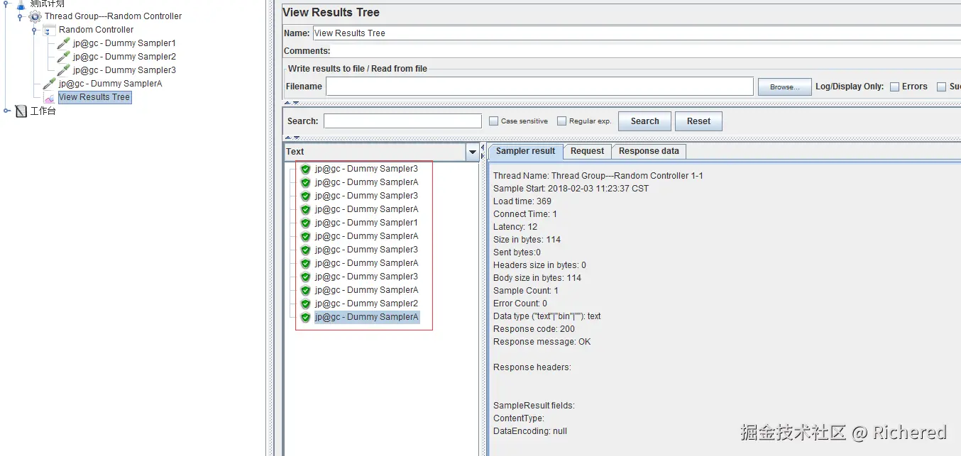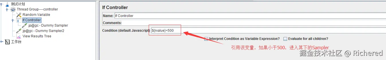 此处外边还有一个DummySampler2,是一样的内容,是为了在结果树中能够更直观的看出if--controller的效果。