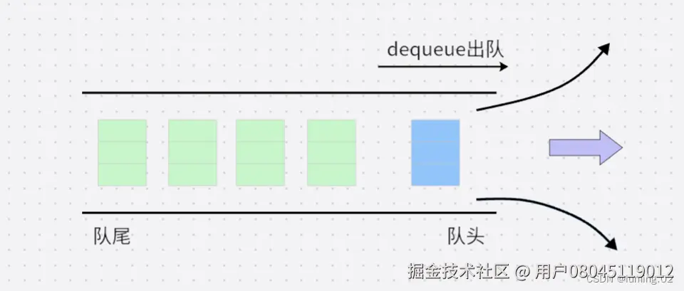 队列是个单向的数据结构,对于入队我们使用了尾插法,那么出队就需要使用删除头节点的方法,出队的图示如下: