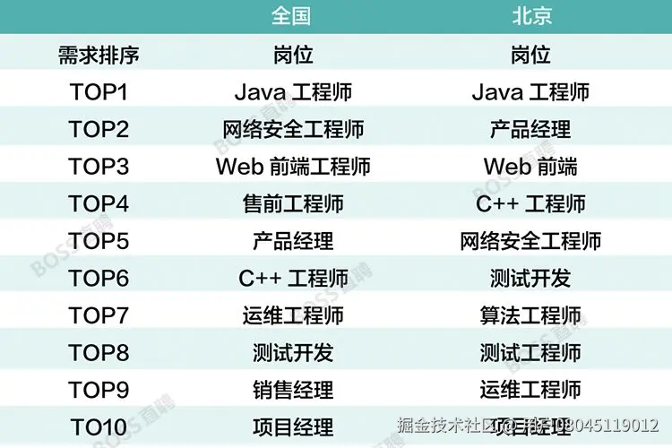 从boss直聘的招聘数据来看,网安工程师的岗位已经超过Web前端,高居第二位。