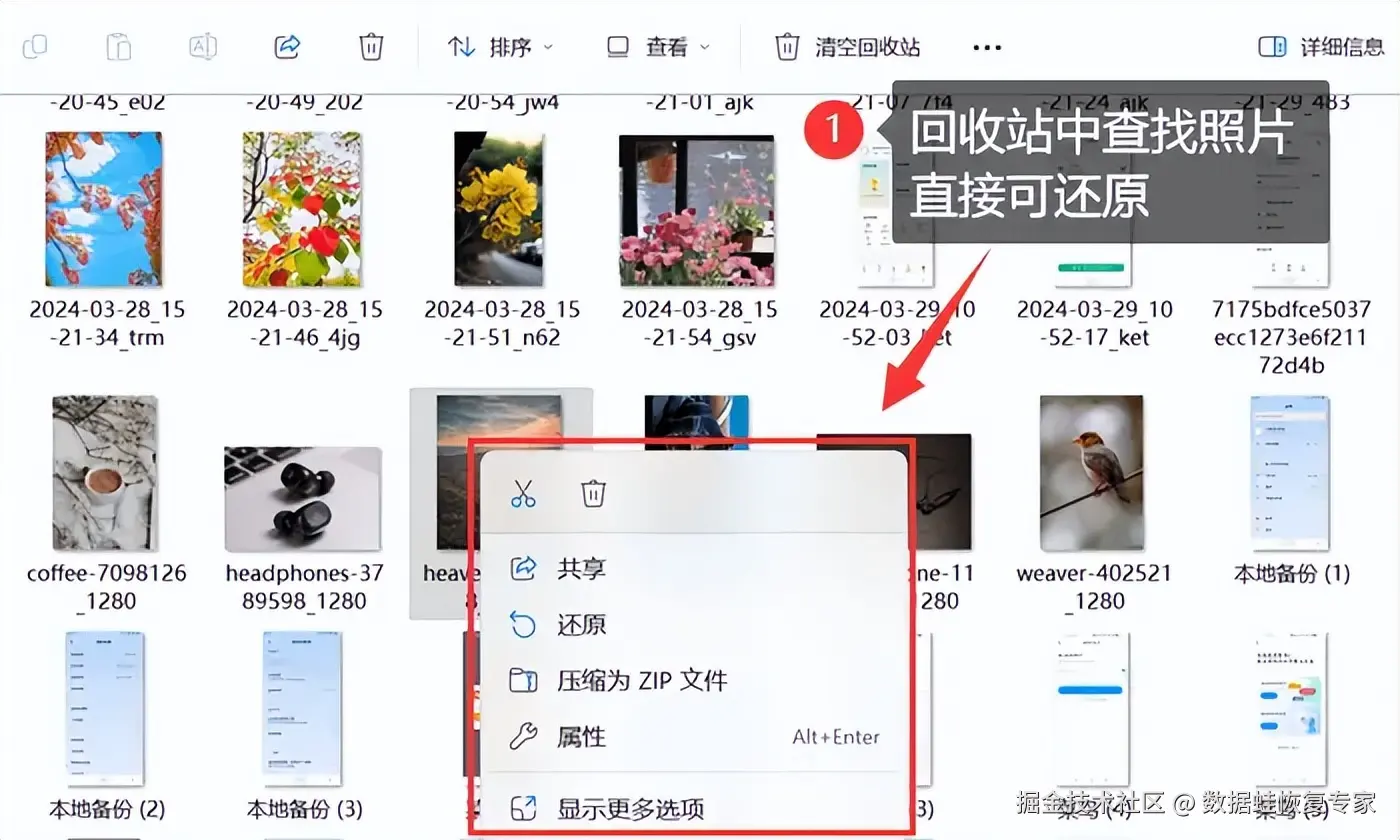 照片找回技巧一:回收站还原