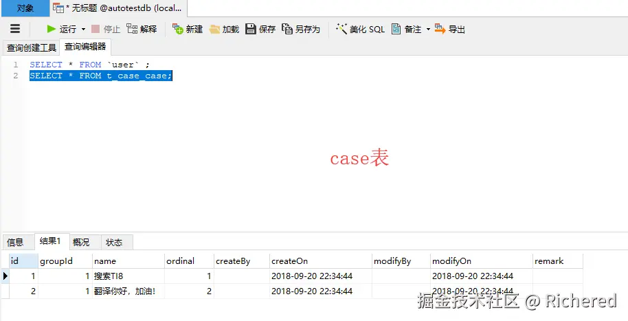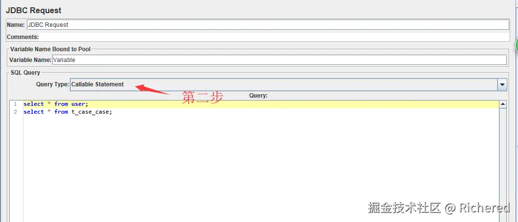 问题出在哪呢?使用JDBC Request执行两条SQL,如下: