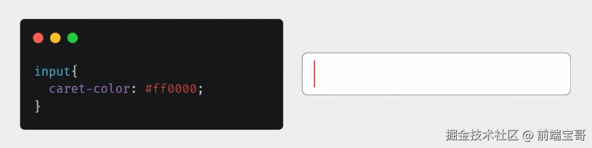caret-color 属性用于指定输入框或任何可编辑文本区域中光标(文本光标)的颜色。它允许你自定义闪烁的垂直线颜色,该垂直线指示将在哪里插入文本。