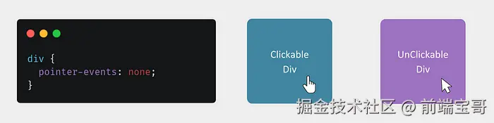 pointer-events 属性确定哪些事件可以在元素上触发。例如,当元素的 pointer-events 属性设置为 none 时,在悬停在其上时不会发生任何鼠标活动。