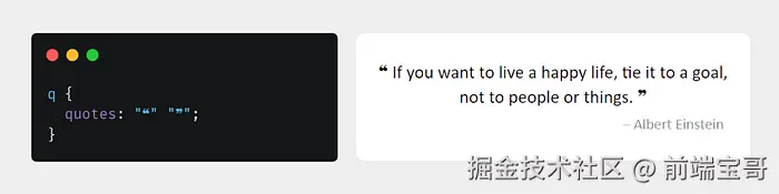 quotes 属性用于自定义自动添加到网页上引用文本或 q 元素内文本周围的引号。