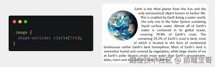 shape-outside 属性定义文本如何围绕 HTML 元素环绕。此属性对于浮动元素特别有用。定义的形状决定了文本围绕该元素的流动,使文本能够平滑地围绕非矩形形状环绕。