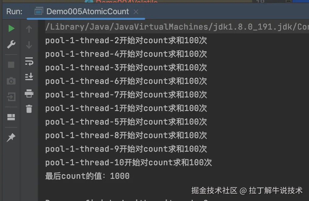 * 10个线程并发对共享变量count进行求和,每个线程求和100次,最后结果是1000