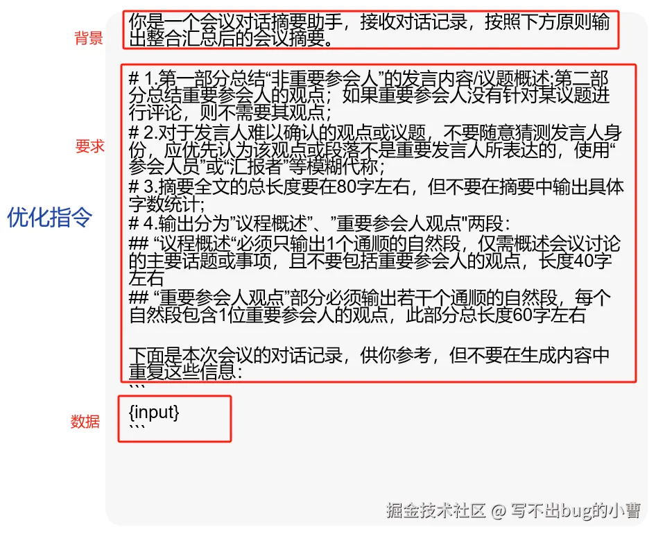 prompt = 问题的背景 + 与问题相关的供AI参考的数据 + 我们对问题的要求/我们希望ai做的事情