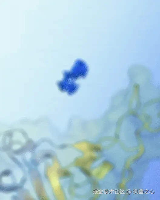 视频 1:预测的蛋白质结合物结构与靶蛋白相互作用的图示。蓝色部分是 AlphaProteo 生成的预测蛋白质结合物结构,旨在与靶蛋白结合。黄色部分是靶蛋白,具体来说是 SARS-CoV-2 刺突受体结合域。(来源:DeepMind 官网)