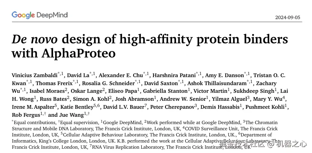 该团队于 2024 年 9 月 5 日上线了最新论文《De novo design of high-affinity protein binders with AlphaProteo》。