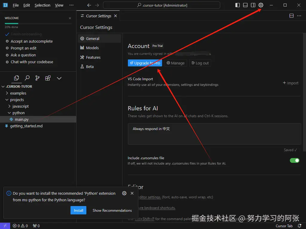 进去之后我们可以选择我们的编辑器,并安装 cursor