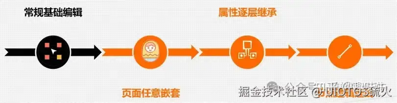 简单说,常规拖拉拽的多个页面之间,不再是平级、跳转关系,而是通过嵌套可形成任意多层、立体的依赖关系。