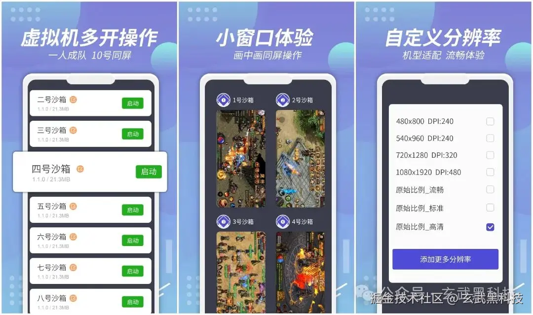 1.支持所有游戏多开、应用多开、微信分身、微信双开/多开。应用、游戏分身小窗口运行,实现画中画同屏,大小号快速切换,可以边玩游戏边追剧,工作娱乐两不误。