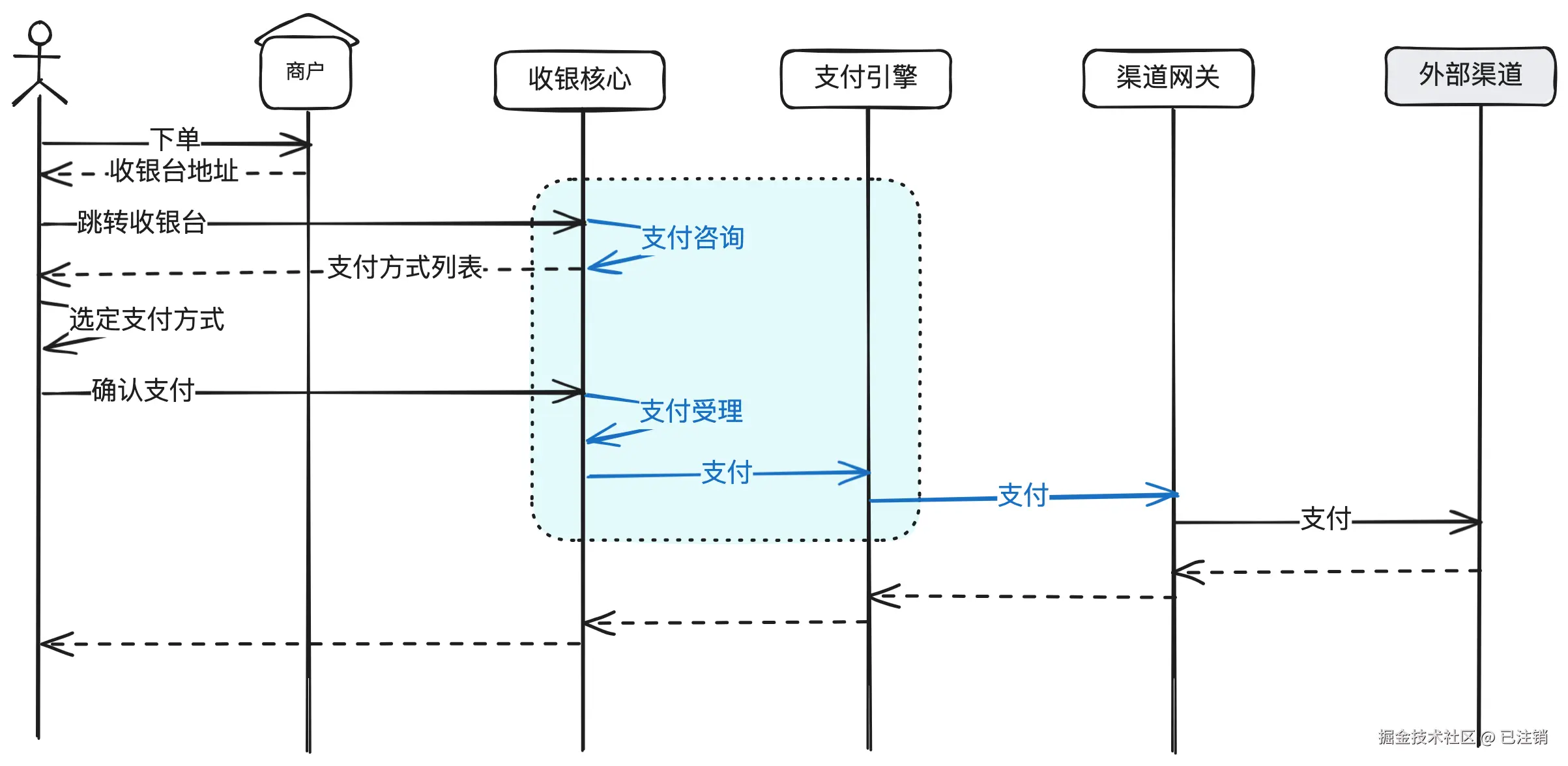 每个公司对于收银核心的设计可能各有不同,但无外乎就是如何为用户计算出可用的支付方式,提交支付后做各种检查,然后调用支付引擎去做真正的支付。