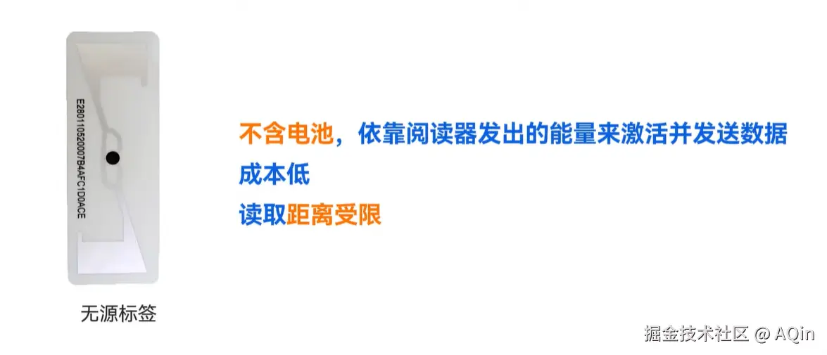 无源标签由一块小芯片和天线组成,无需电池,依靠读卡器产生的电磁场(无线电波)获取工作所需的能量,当进入阅读器的电磁场范围内,无源标签会被激活,标签的IC芯片使用接收到的无线能量将存储的信息编码通过天线以无线的形式发送出去,阅读器捕获这些无线信号并解码数据,解码后的信息会被传输到服务端进行所需要的处理。