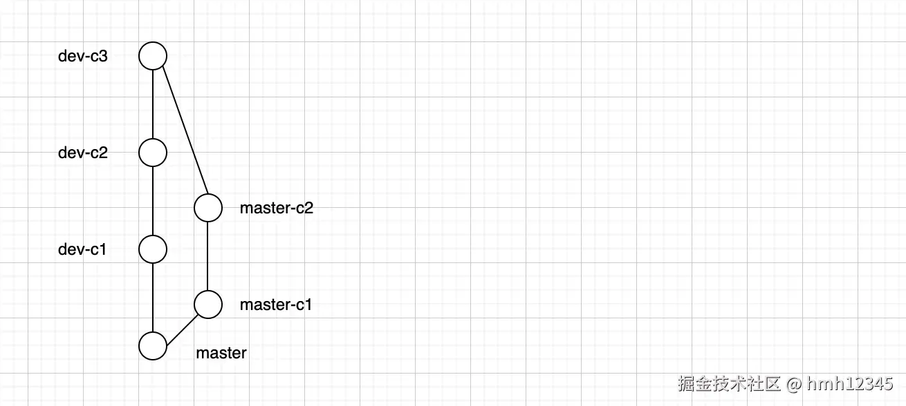场景:dev分支从master分支切出来之后,二者都各自有一些提交,此时要把dev分支合并到master分支上。