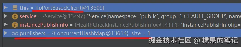 也就是缓存服务实例信息(ip、port信息)到Client对象的publisher中,这里的publiser就是一个ConcurrentHashMap中。