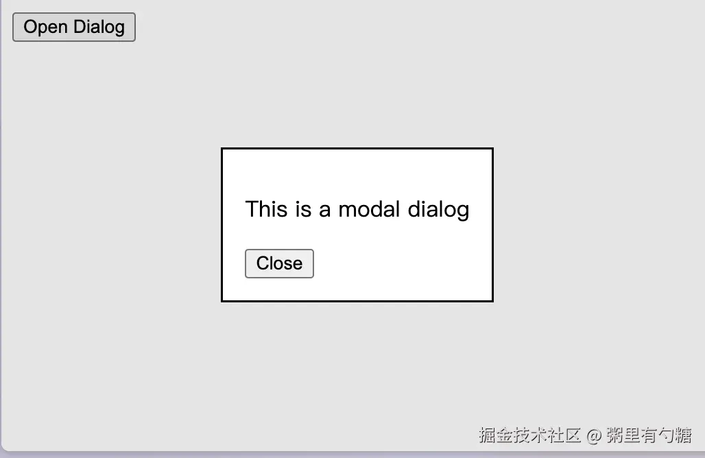 <button onclick="document.getElementById('myDialog').showModal()">Open Dialog</button>