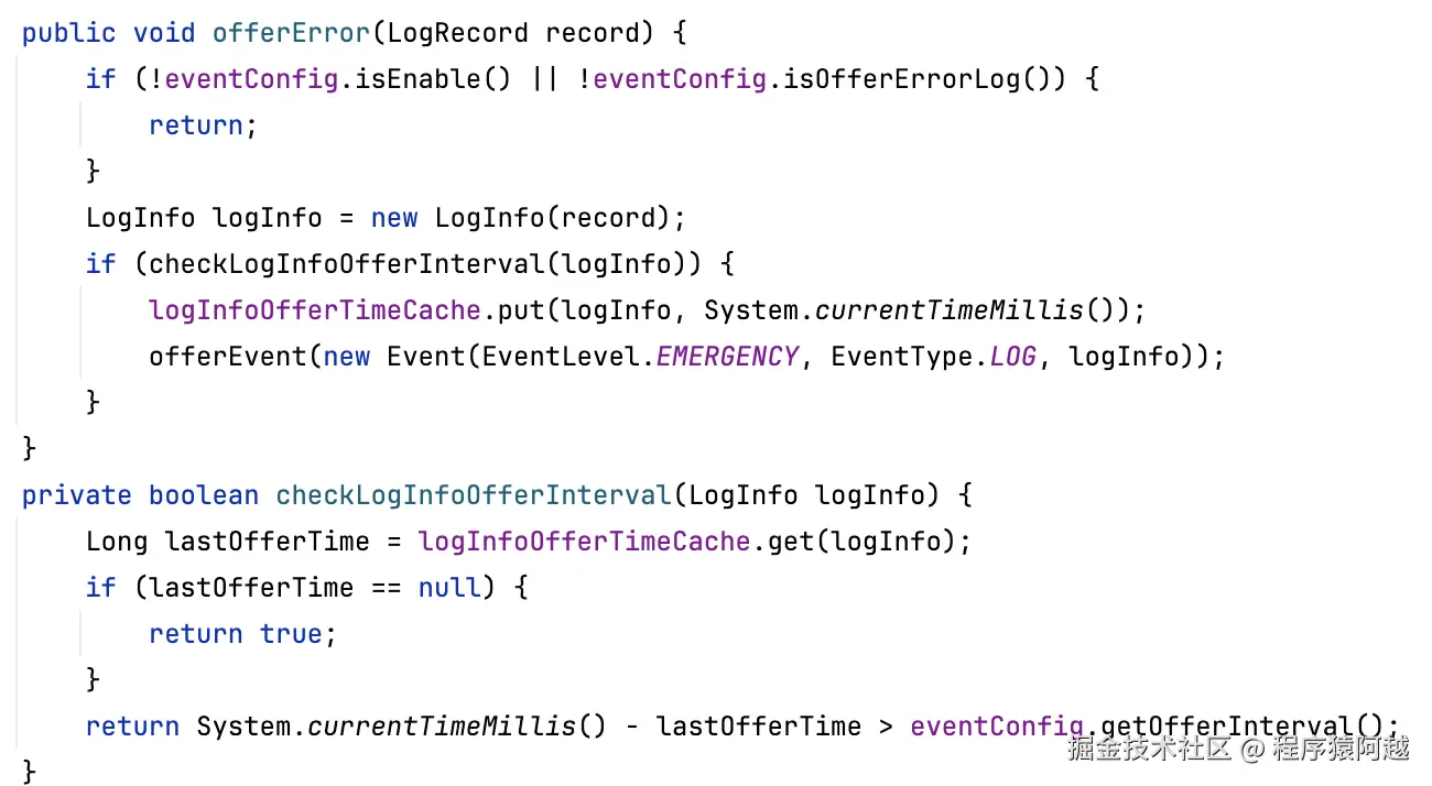LogEventCollector#offerError:采集日志事件同样需要经过LogInfo去重降噪。