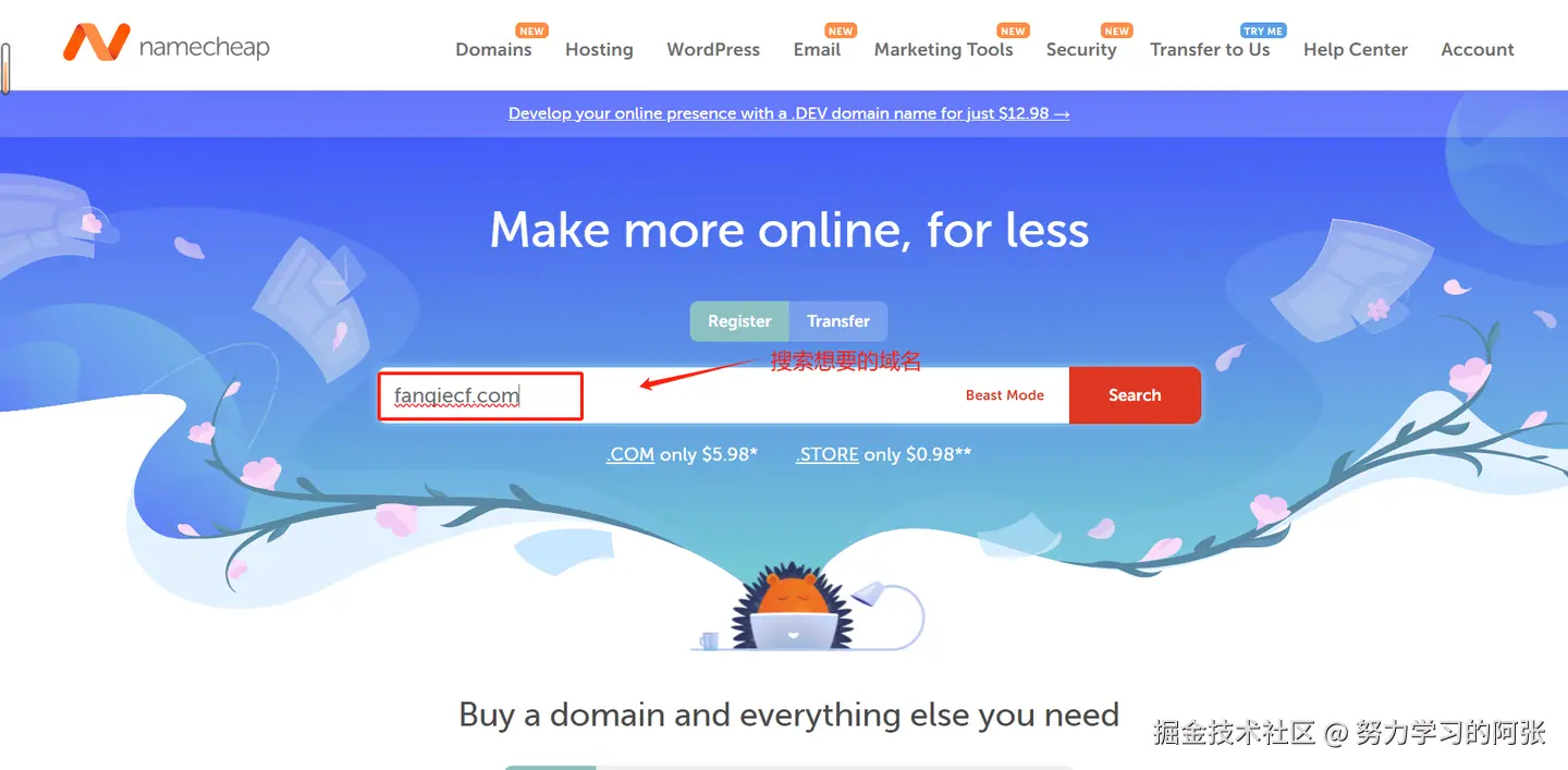 首次使用需要注册,注册之后就可以搜索你想要的域名