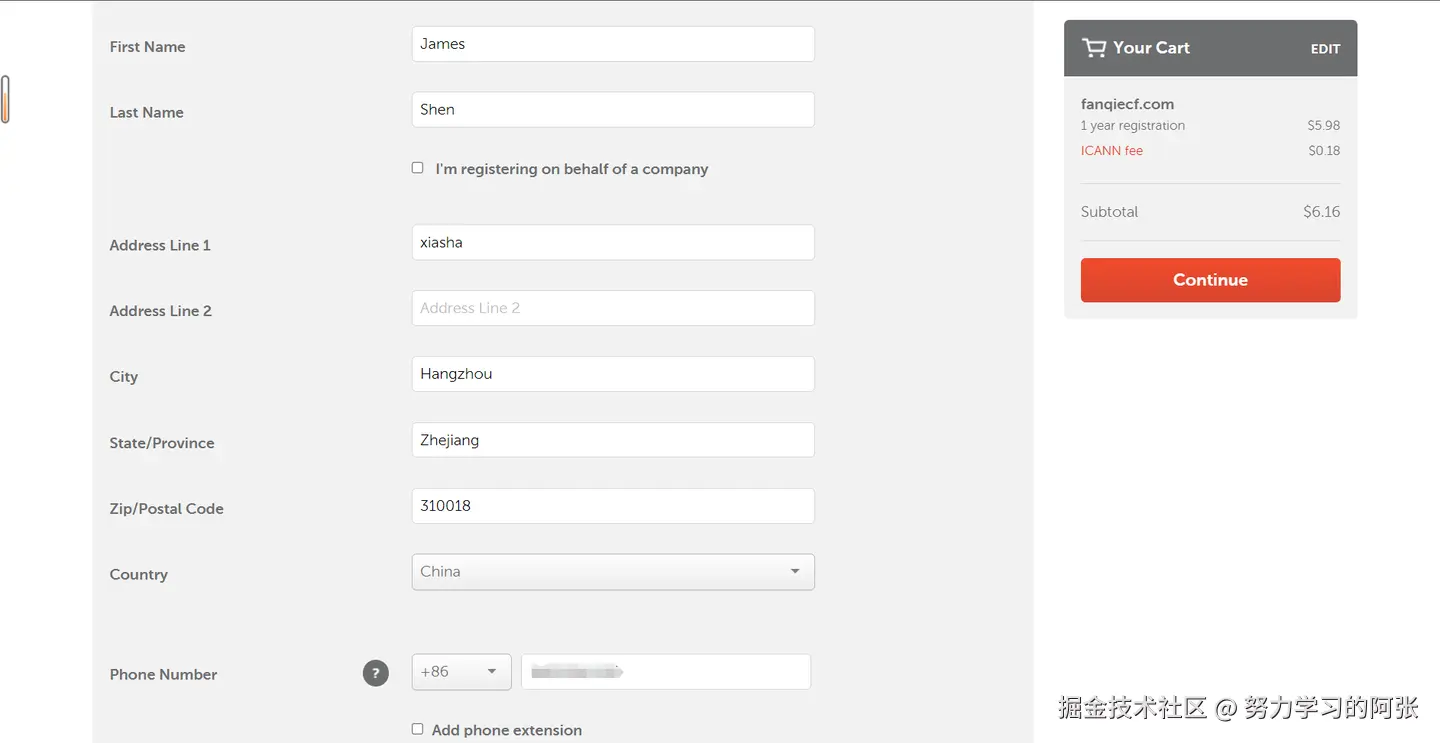 进入“Whois Contact Information”,请检查您的联系方式是否正确