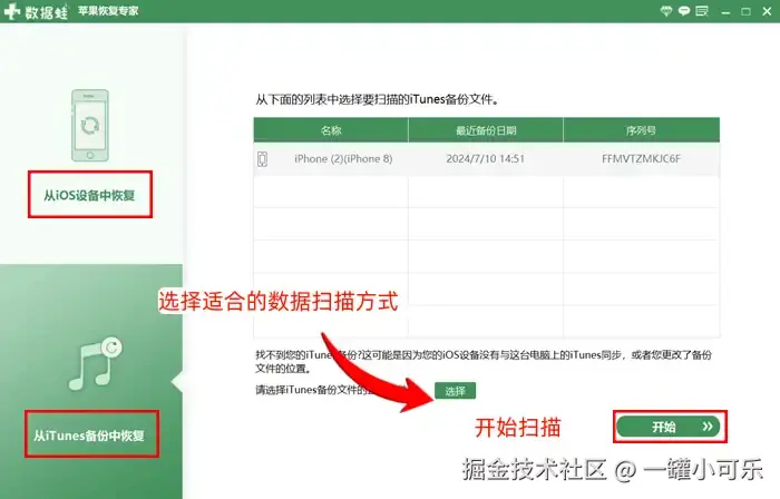 - 提供两种数据扫描方式:从iOS设备中恢复/从iTunes备份中恢复,都可以深度扫描数据。