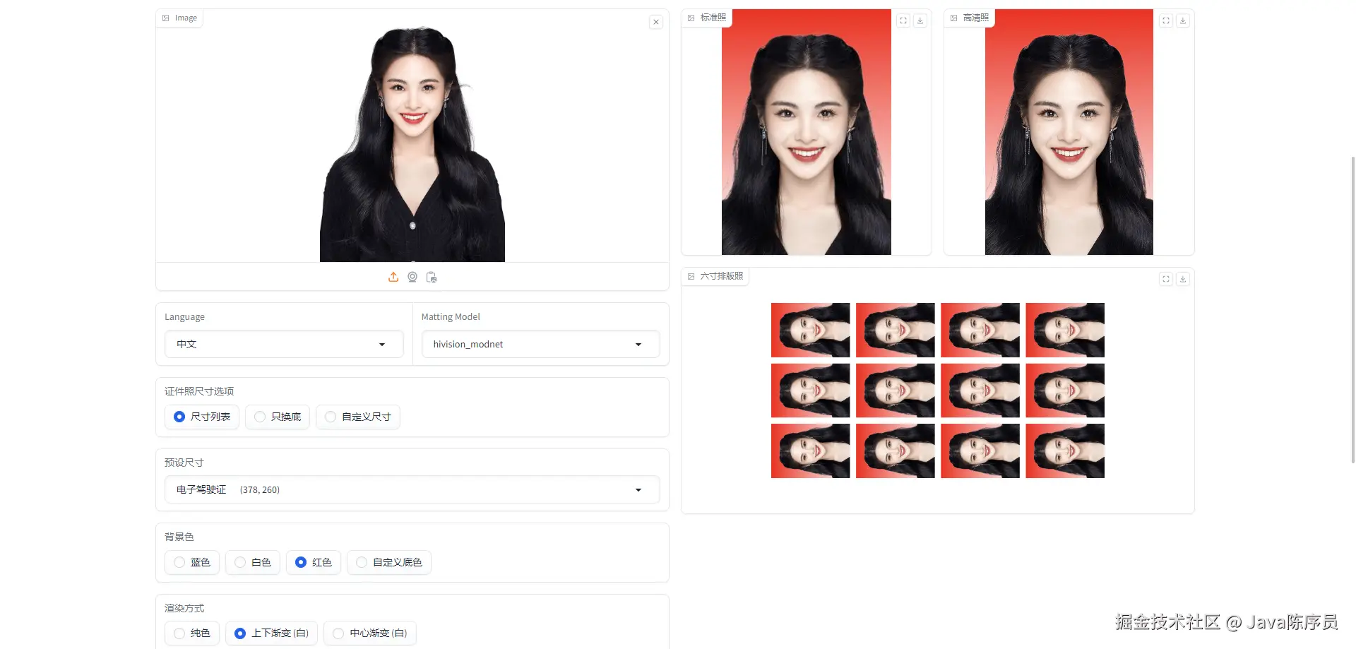 HivisionIDPhotos 利用先进的 AI 技术,自动识别人脸并调整照片的背景、光线和尺寸,确保输出的证件照满足各种官方要求。大家快去安装体验吧~